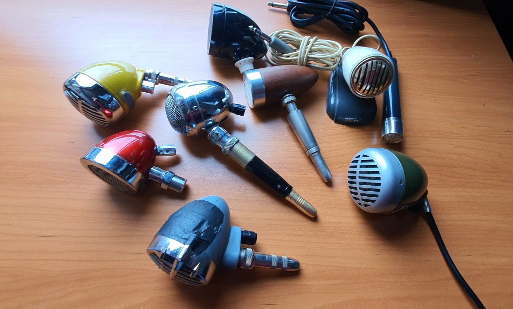 Mi colección de micrófonos, algunos vintage y otros no tanto; distintas marcas, modelos y capsulas, para todos los gustos y situaciones.
